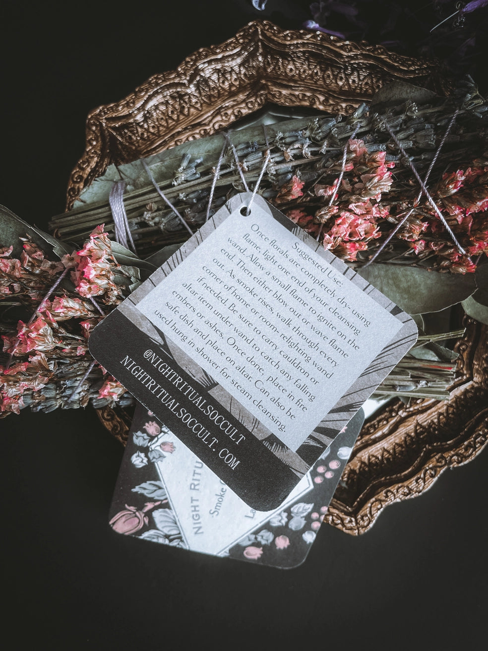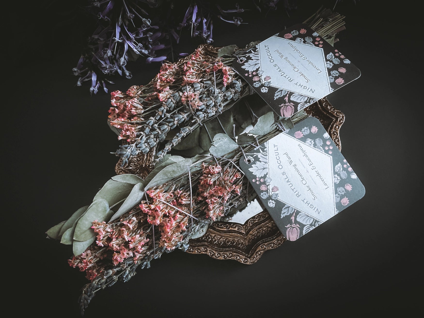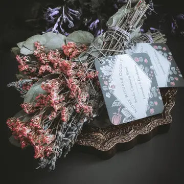 Handcrafted in small batches by Night Rituals Occult. Ethically sourced smoking cleansing wands. Each wand contains Lavender and Eucalyptus flowers. Ready to cleanse and ward off all negative energies and entities, then bring forth peace and healing.